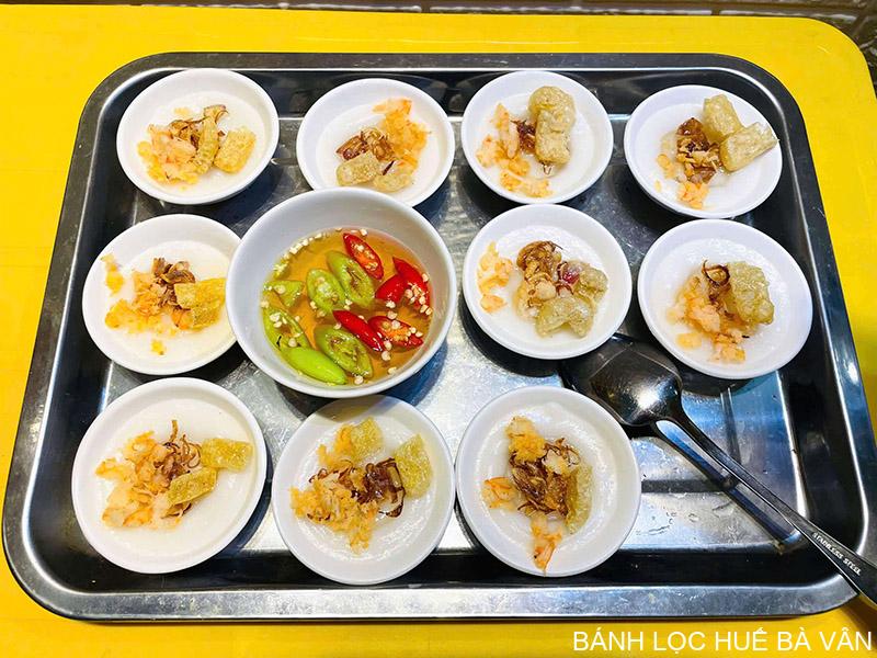 Quan trọng hơn hẳn ở Bánh lọc Huế bà Vân, mỗi đĩa bánh nậm thơm lừng, mềm mại phảng phất mùi lá xanh xanh vừa được hấp chín và mỗi chiếc bánh lọc trong suốt, dai ngon sẽ làm say lòng bất kỳ ai từng thưởng thức.