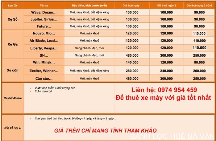 2. Bảng giá thuê xe máy ở Huế giá rẻ cập nhật mới nhất